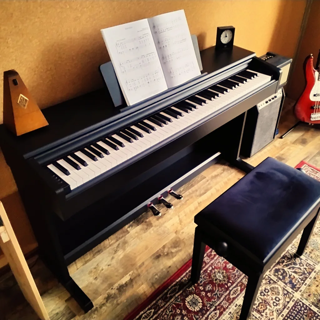 Kom langs in de studio voor een gratis proefles. Je hoeft nog geen eigen piano of keyboard te hebben om te beginnen; we kijken samen wat bij jouw thuisruimte en budget past als je de smaak te pakken krijgt.